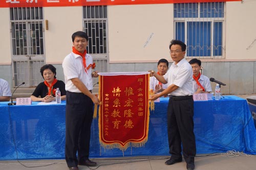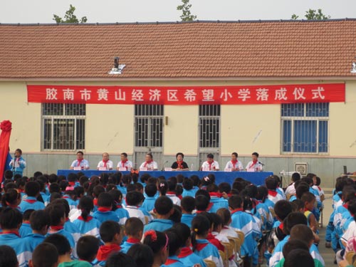 9月20日下午,秋高氣爽、陽(yáng)光明媚,膠南市黃山經(jīng)濟(jì)區(qū)希望小學(xué)落成儀式在學(xué)校大操場(chǎng)隆重舉行。激昂的國(guó)歌聲后,少先隊(duì)員們?yōu)槌鱿I(lǐng)導(dǎo)敬獻(xiàn)紅領(lǐng)巾,以此來(lái)表達(dá)孩子們的崇高敬意。一位學(xué)生代表用稚嫩的童音道出了對(duì)青島海川建設(shè)集團(tuán)及支持希望工程事業(yè)建設(shè)的各類愛(ài)心團(tuán)體的誠(chéng)摯感謝,和臺(tái)下上千名含苞待放,映襯在陽(yáng)光里的一張張幸福笑臉一樣,他們都是祖國(guó)的未來(lái)和希望,也讓在場(chǎng)的每一位成年人對(duì)“捐資助教、功德無(wú)量”這句話有了更深刻的理解和感悟。黃山經(jīng)濟(jì)區(qū)希望小學(xué)校長(zhǎng)懷著激動(dòng)地心情向海川集團(tuán)贈(zèng)送錦旗一面,愛(ài)心助學(xué)的善舉也贏得了在場(chǎng)師生一次又一次熱烈的掌聲。集團(tuán)黃中坡副總裁代表發(fā)言,他特別指出,今年恰逢集團(tuán)成立60周年之際,本著“節(jié)儉辦大慶”和“注重社會(huì)公益性”的宗旨,集團(tuán)將主要活動(dòng)資金拿出來(lái)援建黃山經(jīng)濟(jì)區(qū)中心小學(xué),另外發(fā)動(dòng)企業(yè)職工向老一輩建筑人曾經(jīng)援建過(guò)的四川藏族甘孜地區(qū)捐獻(xiàn)衣物。通過(guò)一系列與社會(huì)接軌的主題活動(dòng),力爭(zhēng)將本次大慶辦得更有意義。最后他衷心希望膠南市黃山經(jīng)濟(jì)區(qū)中心小學(xué)的全體同學(xué)從小樹(shù)立遠(yuǎn)大目標(biāo),刻苦學(xué)習(xí),努力向上,爭(zhēng)做國(guó)家棟梁之才,立志回饋社會(huì),報(bào)效祖國(guó)。青島團(tuán)市委副書(shū)記張海軍和膠南市委副書(shū)記佟海燕也出席儀式并與海川集團(tuán)黃中坡副總裁一起為希望小學(xué)揭牌,同時(shí)就海川集團(tuán)對(duì)教育公益事業(yè)的傾情參與和大力支持給予了充分肯定和高度評(píng)價(jià)。