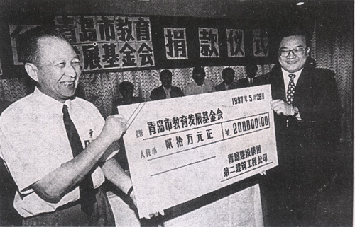 1997年5月28日海川向青島市教育發(fā)展基金會(huì)贊助20萬(wàn)元,設(shè)立青島市首家施工企業(yè)命名的教師素質(zhì)教育基金