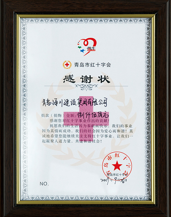 紅十字會感謝狀