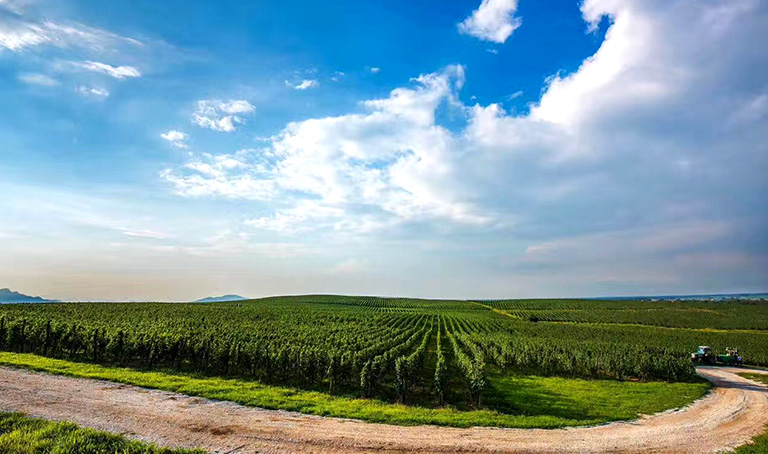 九頂莊園擁有3500畝的波狀丘陵地和梯田。葡萄樹的種植均采用從法國進口的葡萄藤,以保證純正的基因以及葡萄品種。莊園延續(xù)了葡萄酒配制的經(jīng)典法國傳統(tǒng)。經(jīng)過多年的不懈努力以及精心培育,莊園于2011年迎來了第一個葡萄收獲期,葡萄酒產(chǎn)量去年已超過45000瓶,可以生產(chǎn)出9種葡萄酒。這些葡萄酒被銷往中國大陸和香港的各大頂級酒店、餐廳、專業(yè)葡萄酒店以及高端零售連鎖店等。并多次在世界葡萄酒大賽上獲得各類獎項得到了消費者的一致好評。