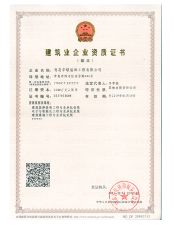 2017年4月,青島華聯(lián)裝飾工程有限公司傳來(lái)佳訊,其申報(bào)的電子與智能化工程專(zhuān)業(yè)承包貳級(jí)和建筑幕墻工程專(zhuān)業(yè)承包貳級(jí)增項(xiàng)資質(zhì)雙雙成功獲批。