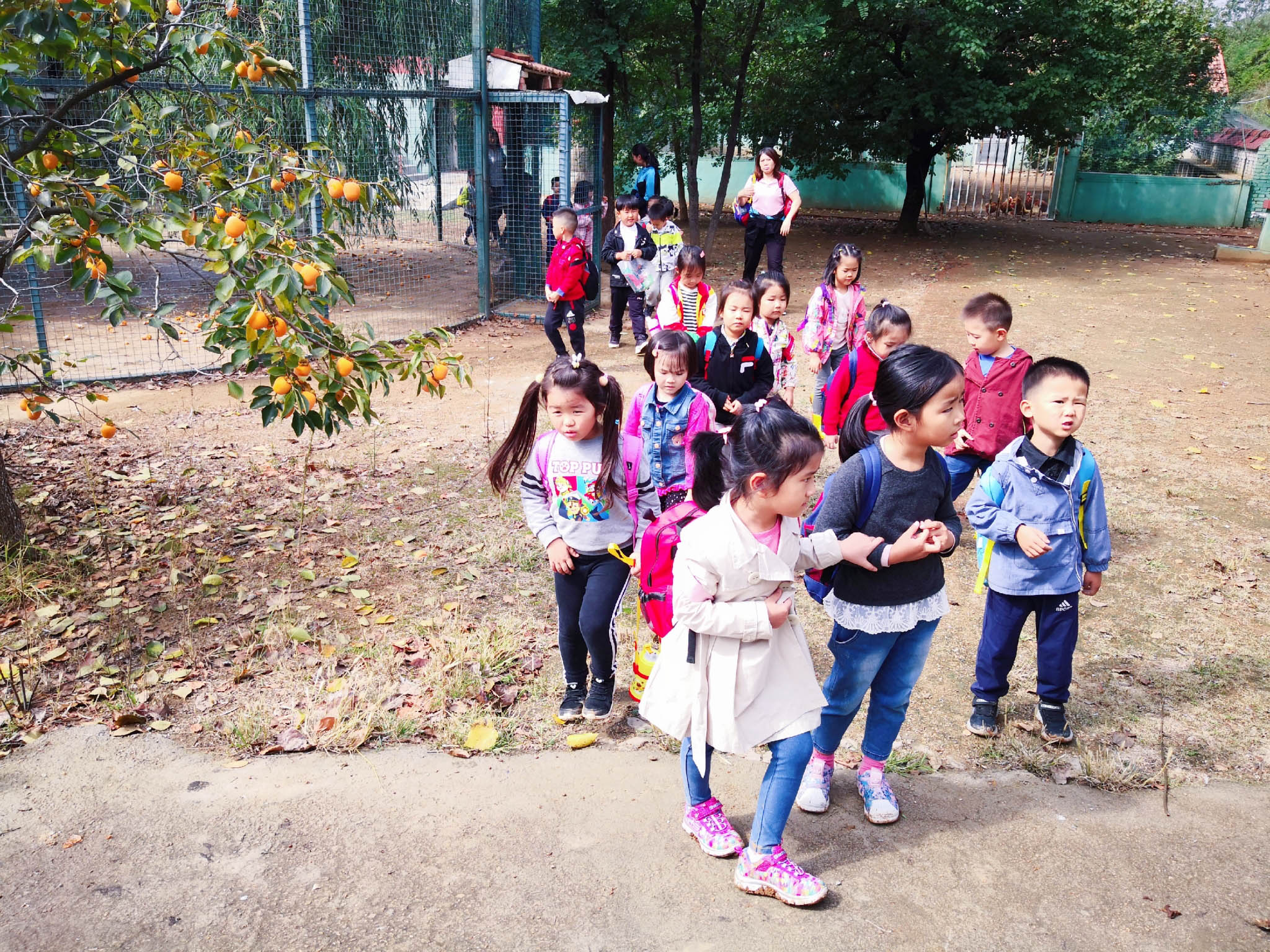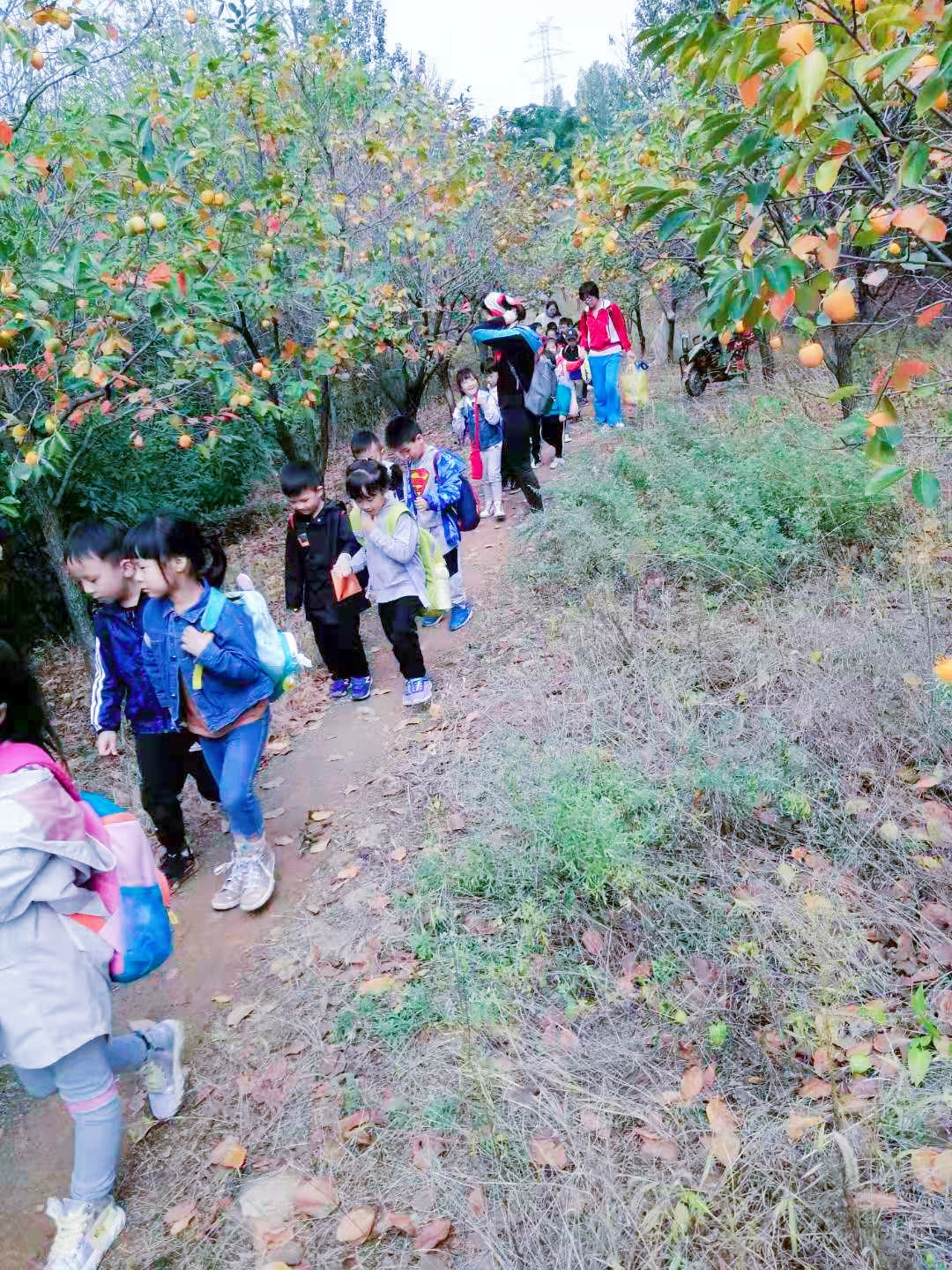 小朋友們滿懷欣喜與好奇走進(jìn)果園,成熟的柿子壓滿枝頭,一個(gè)個(gè)飽滿的果實(shí)調(diào)皮地躲在葉子下面,熟透的柿子像一個(gè)個(gè)大燈籠。