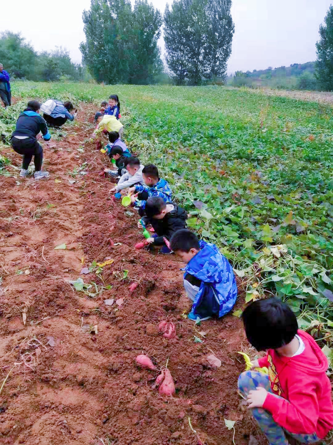 孩子們了解到了應(yīng)時(shí)農(nóng)作物紅薯、芋頭、玉米、茄子、青椒、蘿卜、白菜、柿子等果蔬的采摘收獲過程。